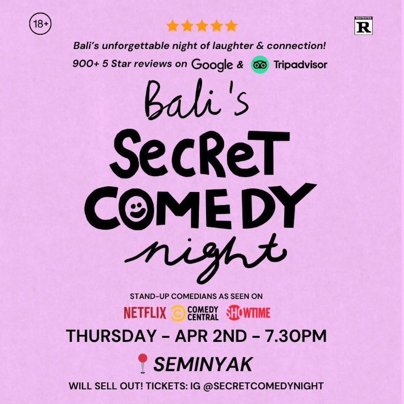 SECRET COMEDY NIGHT – APR 2ND (Live in Seminyak) – 7.30PM
