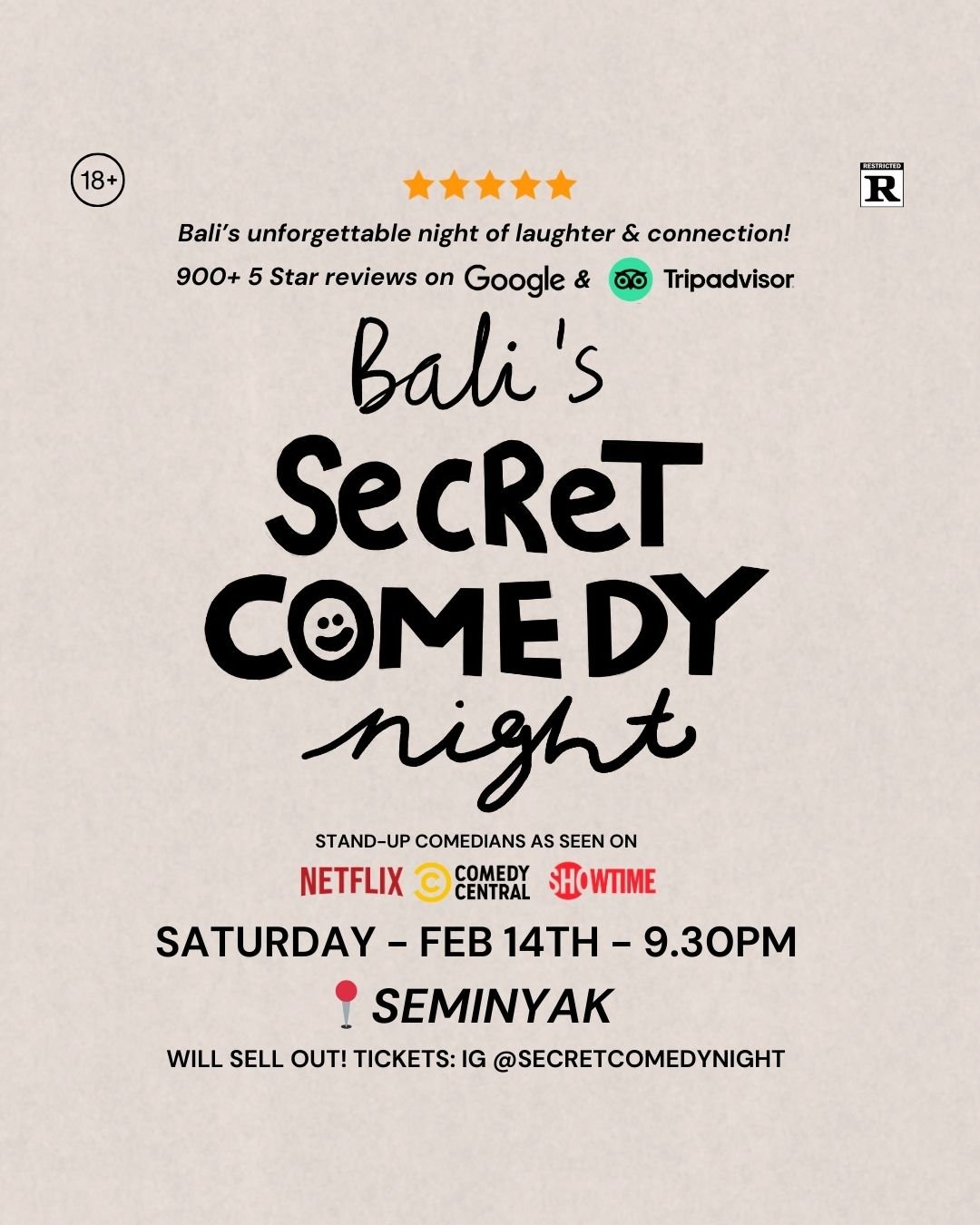 SECRET COMEDY NIGHT – FEB 14 (Live in Seminyak) – 7PM